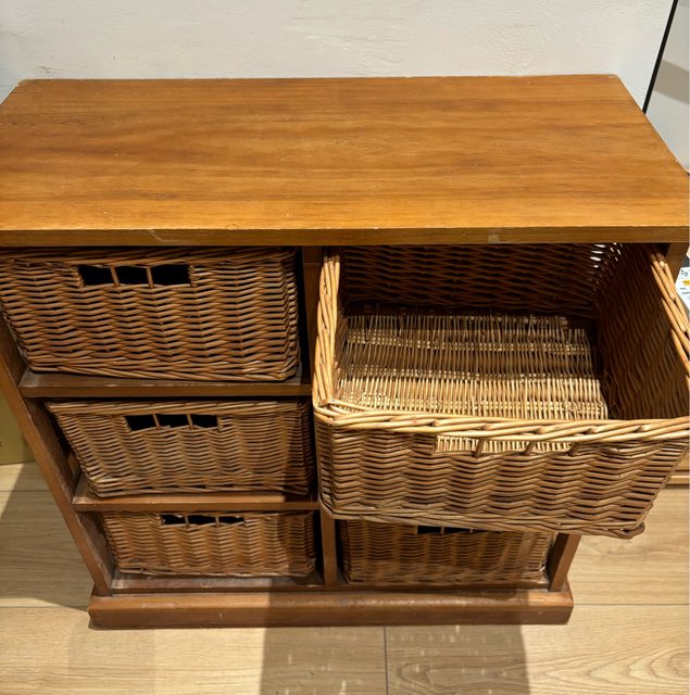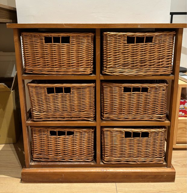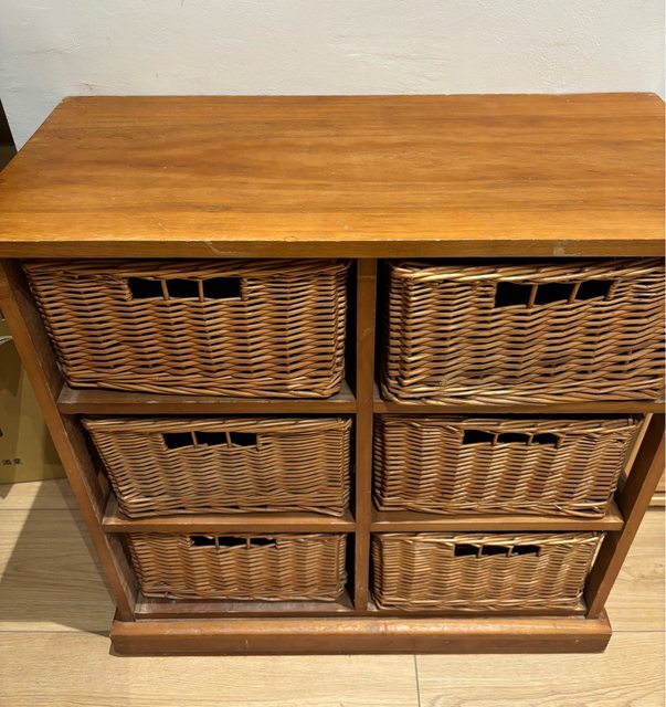 標題[交易] 仁德/木製藤籃六格收納櫃