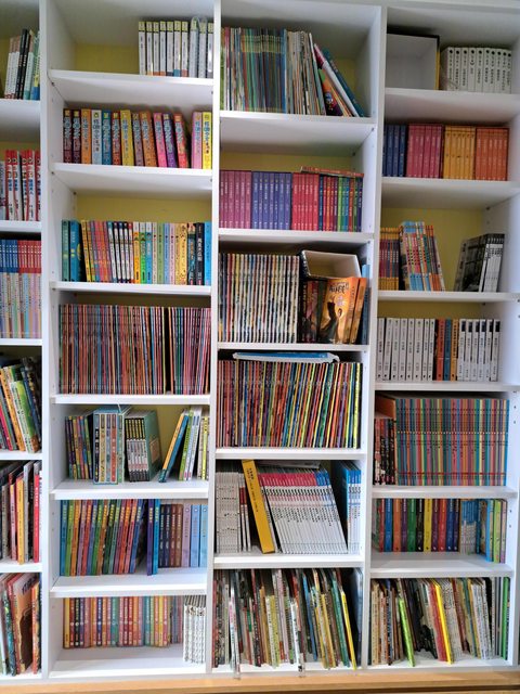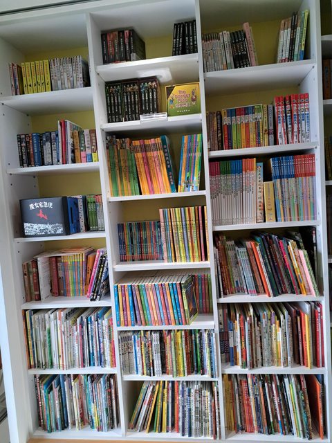 從幼兒園/小學低年級繪本,中年級橋樑書,到高年級小說都有。(中文為主,有部份英文