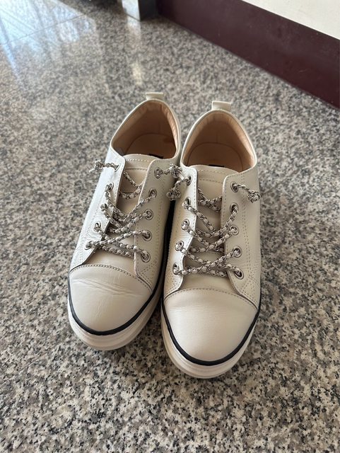 於今年8月於專賣店購入,因鞋子太多穿不到故想售出,小白鞋搭配鏈條造型不用綁鞋帶