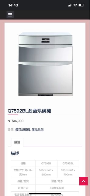 標題[交易] 售全新櫻花落地式烘碗機Q7592BL