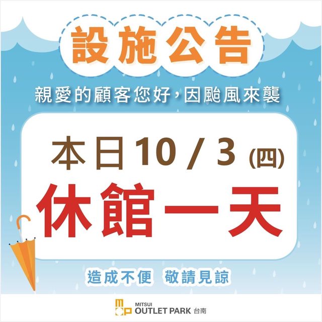 → baychi999: 南部百貨全放了 只剩賣場有開 10/03 10:29