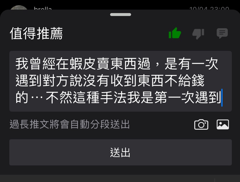 推 ptk9811107: 現在詐騙連賣家都會騙了10/04 22:51