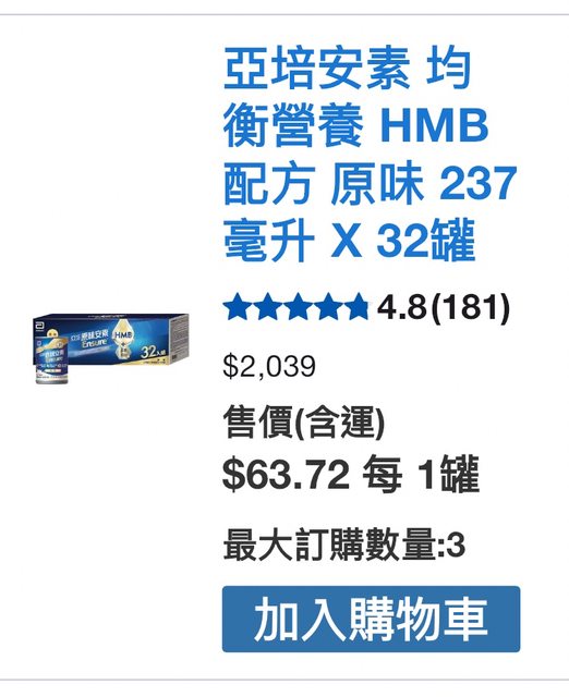 7月底家人開刀 好市多線上買了一箱32罐裝的原味安素。