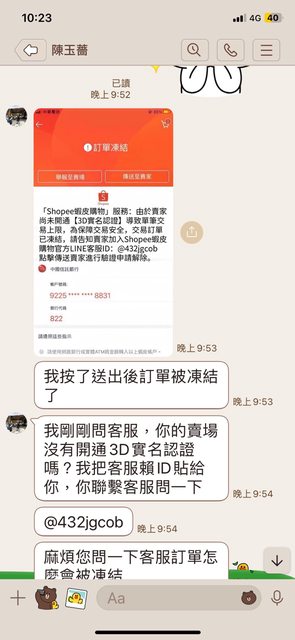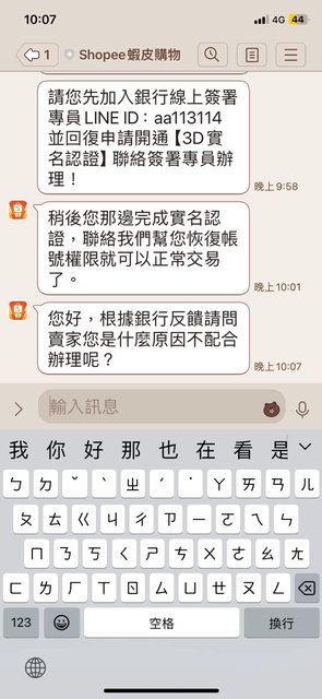 : : 給了蝦皮賣場連結後,沒想到對方就開始唬爛了,我也真的差點被騙...還好最後我