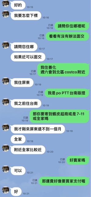 : : 在這個版賣巧虎的書(今天才po面交賣東西),結果這個買家加了賴之後說住屏東,