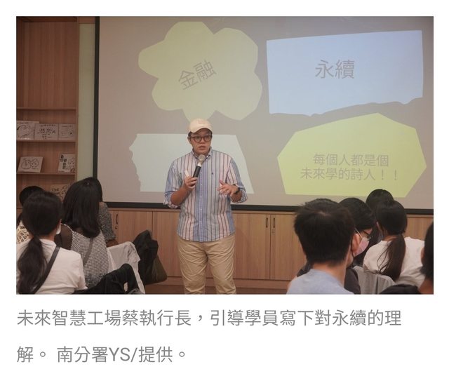 雲嘉南YS安排以雙講師來跟青年朋友分享永續金融議題,國立成功大學未來智慧工場執行