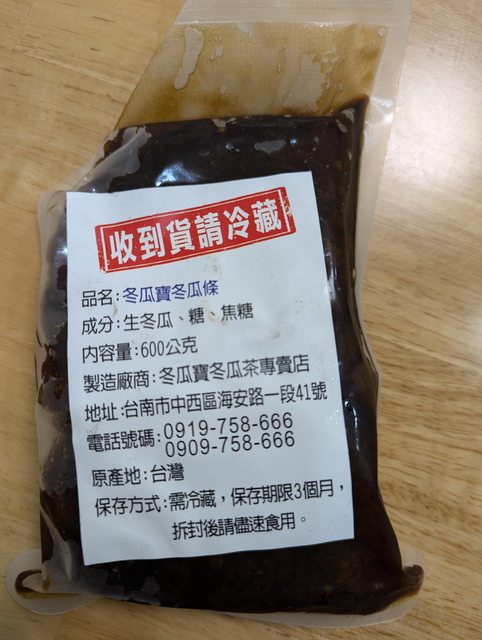 今年8/8買冬瓜汁送的冬瓜條,收到就一直放冰箱,冰到忘記了