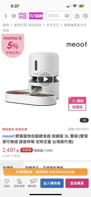 meoof 膠囊寵物自動餵食器 按鍵版 3L雙碗 (不是wifi 版本)