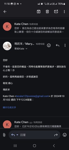 推 nochewen: 雖然沒買過,但覺得信件內容誠懇回覆。辛苦了,希望早 10/30 12:08