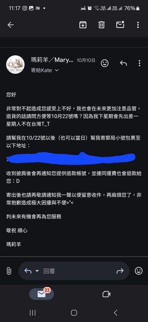 推 coolyayaya: 從回信內容就覺得賣家很負責 10/30 16:02