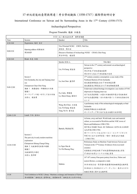 「17世紀前後的臺灣與周邊:考古學的觀點(1550-1717)」國際學術研討會