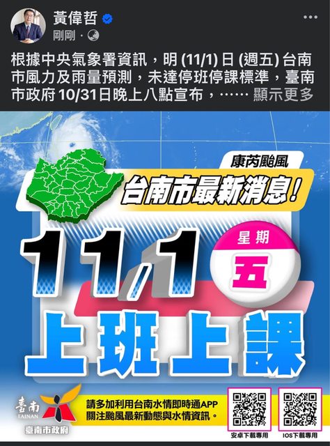 推 oscarwu3041: 一宣布正常上班課 風雨馬上增強 10/31 20:17
