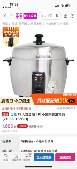 → poiuy0605: 電鍋已售出 11/02 22:00