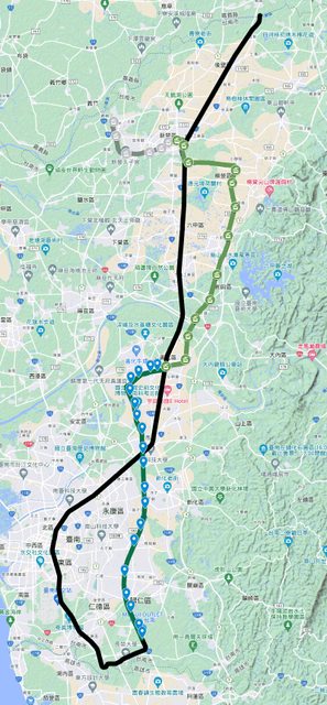 → njunju: 藍線已占8公里;紅線、綠線、藍延、深綠大概是要互相PK進 11/03 22:05