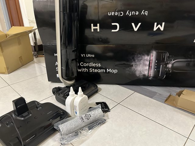 3. MACH V1 Ultra 馬赫無線蒸汽洗地機當初在嘖嘖預購要三萬多,很適合養貓或是寶寶家庭,不沾手還有自動烘乾功能超方便的!全新滾輪、刷子、清潔劑各一和除垢粉兩包。搬到套房用不到啦降價賣8000,誠可議。