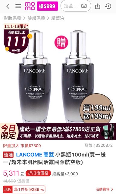 100ml蘭蔻小黑瓶*1
