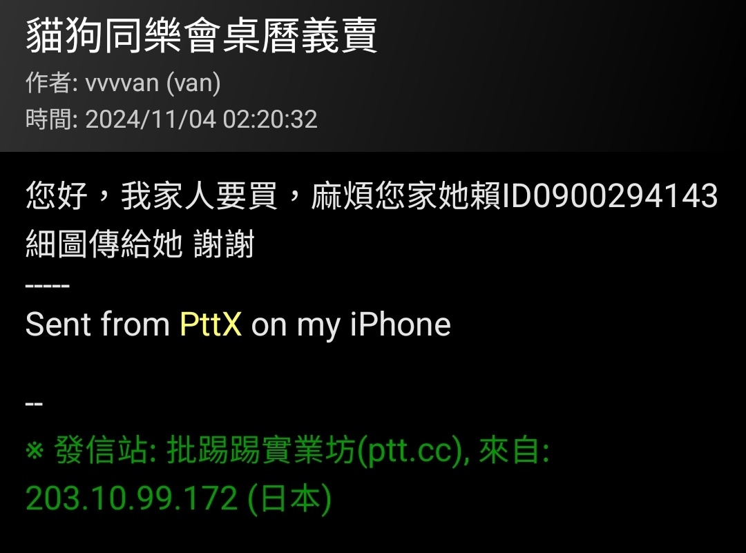 → kamato319: 我也收到,叫我寄貨到付款到宜蘭給他!都發在台南版了 11/22 21:46