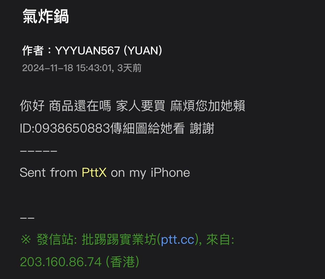 → darvish072: 詐騙死全家^ ^ 11/22 22:08