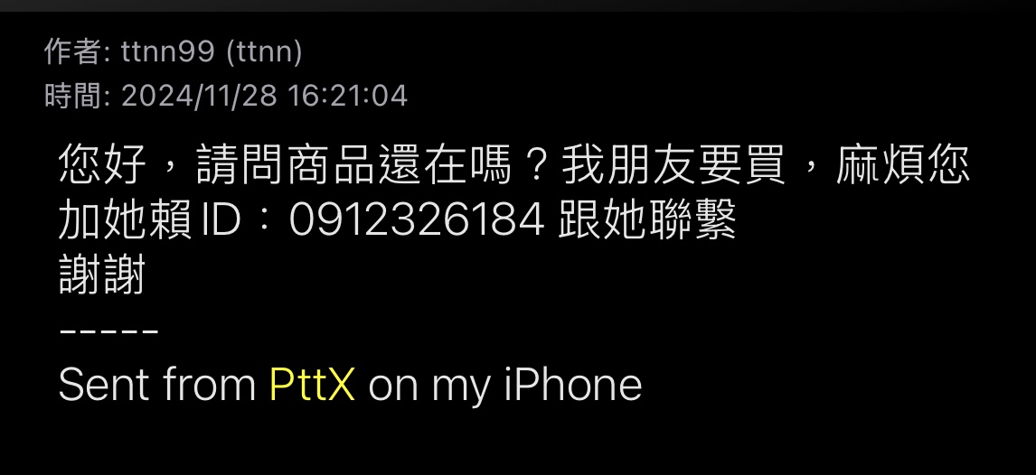 推 leoz69927: 現在地方板有詐騙帳號會主動問東西送出了沒還是賣了沒 11/29 03:42