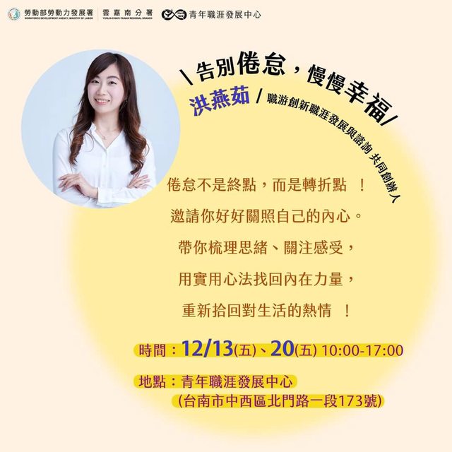 標題[活動] 勞動部YS免費課程 #告別倦怠,慢慢幸