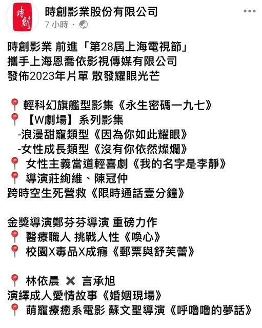 標題[新聞] 時創影業2023至2024片單