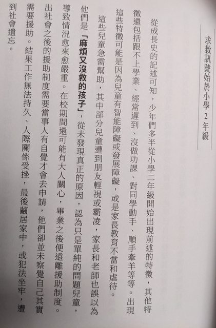 雖然這本書內的例子都是進入了犯罪,但他們的困境也跟家長不懂或不了解他們的問題有