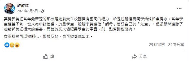 許政維FB 2020年8月5日爆料