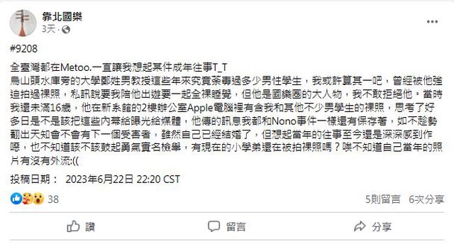 鄭姓教授遭指控是狼師,有匿名網友自稱被害人,