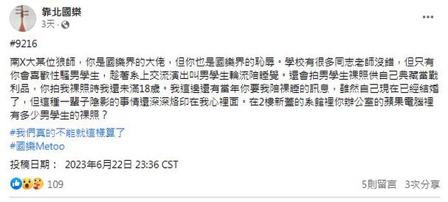 靠北音樂圈 鄭德淵 性侵性騷擾拍學生裸照 有未成年受害