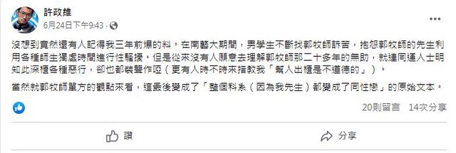 許政維FB 2023年6月24日爆料