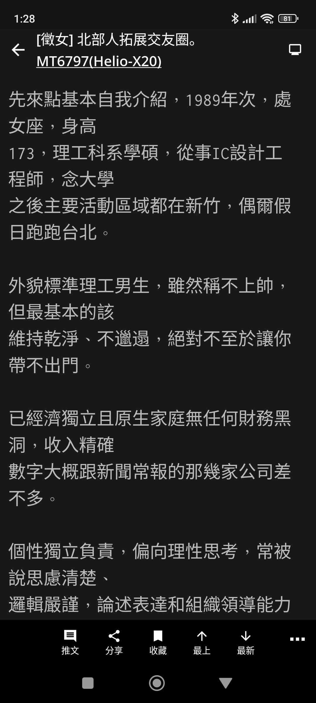 cyclone055 : 有吧,不是每個徵友板的女森都知道 111.243.67.181 07/18 02:50
