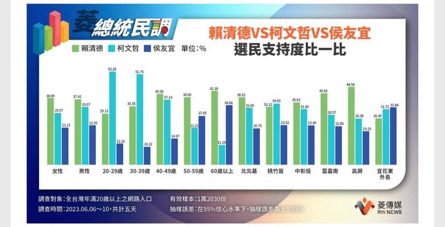 柯文哲在20-29歲的女性狂贏賴清德23%