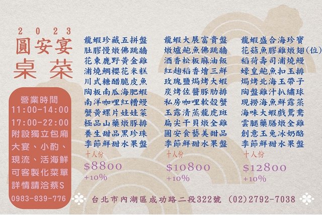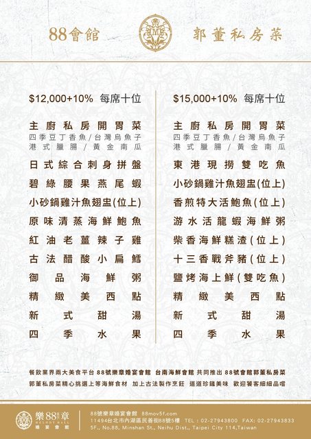 今年父親節無法提前慶祝 為了湊大家的時間延到下星期才聚餐 時間好不容易確定下來了 但不知道要吃哪家 因為時間延後了 想說就要更有儀式感一點 我有先找了兩家菜品豐富 感覺比較對家人口味的海鮮餐廳 內湖的各位父親節去哪吃飯慶祝呢?也給我點建議吧 1、88會館-郭董私房菜 這家是我的口袋名單之一 朋友去吃過說師傅手藝很厲害 食材新鮮 份量也夠 很推我去 但朋友是吃單點 有特別推現撈雙吃魚跟砂鍋魚翅盅 才上來問問看桌菜套餐好不好? 有人吃過嗎? https://i.imgur.com/sbAFEuW.png