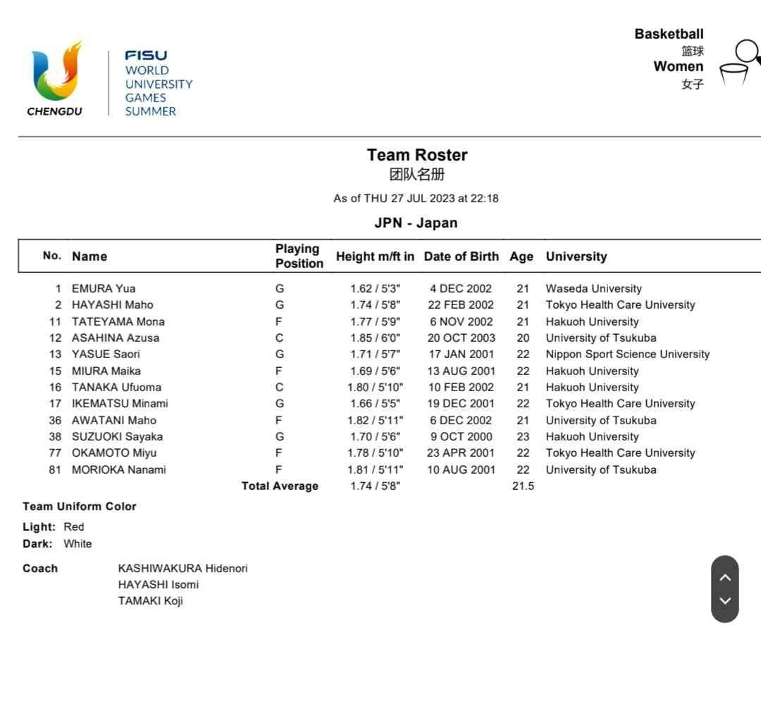→ ntuwalker : 到,有人知道日本世大運女籃名單的嗎?估計是日本大 07/29 17:26