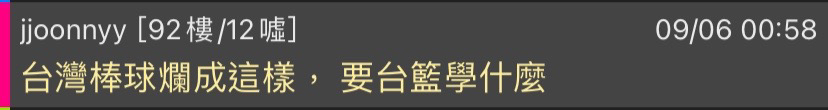 → respectyo : 重點就是台棒圈的人想變好啊台籃圈覺得現在就好 09/08 01:59