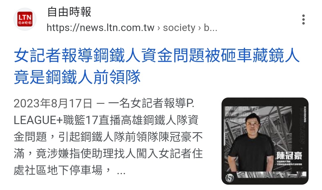 → snocia : 不利的報導派人砸車,事後半年仍持續擔任領隊,被 11/14 15:34