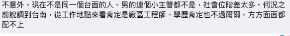 噓 black205 : 找一個會偷吃的 以後八成被二劈 11/28 11:17
