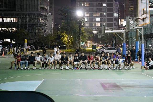 在北科大校園籃球場上出現排排坐的景象