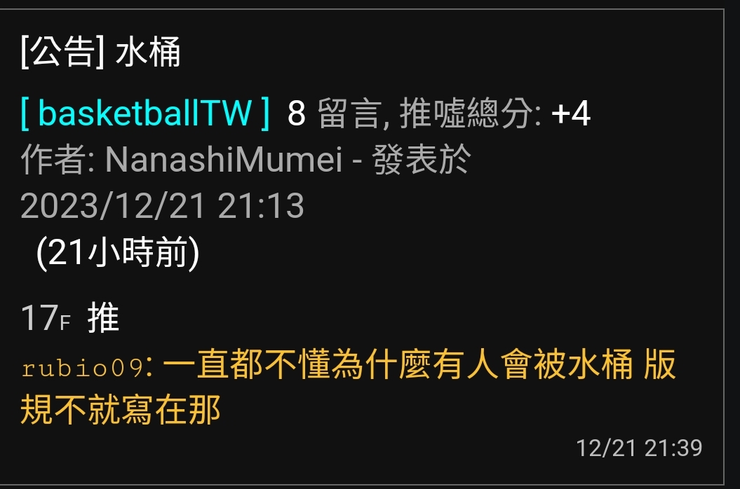 推 access4096 : Z版主說那位484曾經因為罵中信爪被水桶過? 12/29 21:32