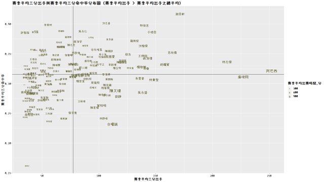 下一篇文章將進一步分析種三分球指標中,表現優異(或差強人意)的球員,並評選台灣