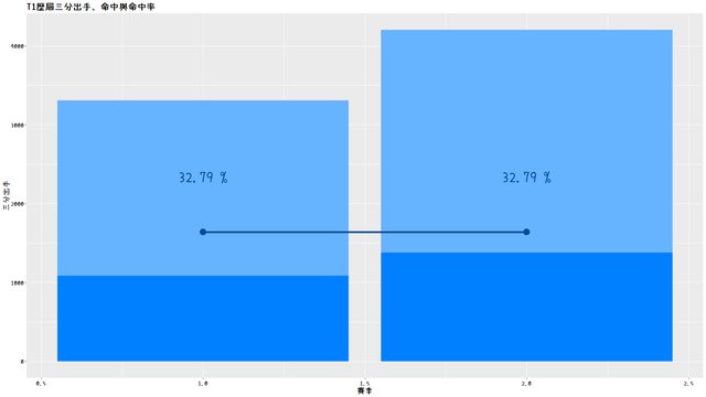 由於優秀球員出走,命中率下降幅度較大,但後兩張圖之中PLG和T1的命中率,還是有維