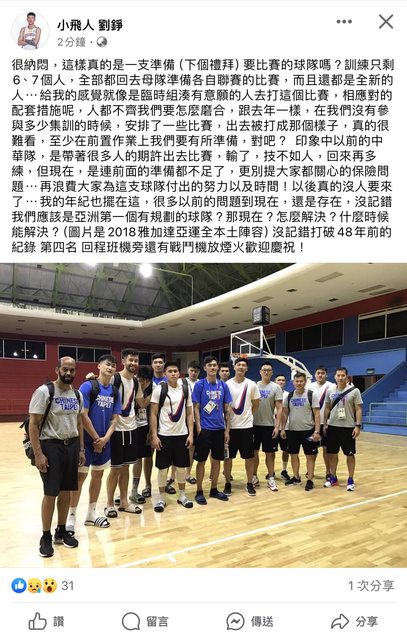 噓 r44621 : 連劉錚都出來開噴了 建議全部都不要打 反正籃協就爛 02/15 18:56