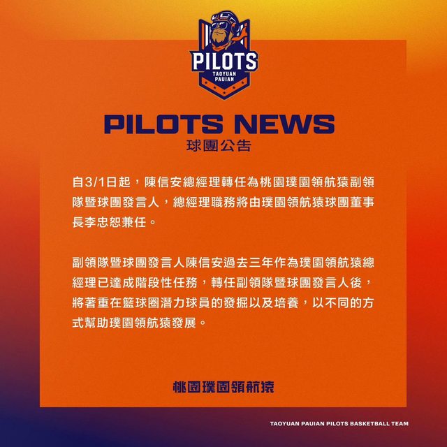推 jy72121 : 剛看年哥的ig,他說是信安推薦他來領航猿任職 03/06 18:26