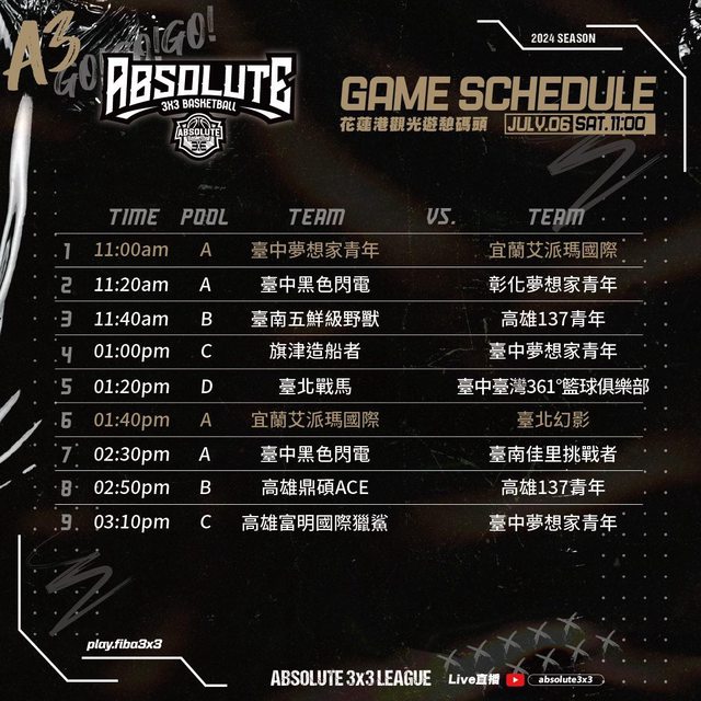 LIVE 3rd ROUND | DAY1 | ABSOLUTE 3x3 League | 花蓮港觀光遊憩碼頭 網路直播