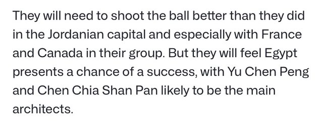 中華台北快速且壓迫的風格應該會讓他們在比賽中獲得一兩場勝利,因為他們也已經做好