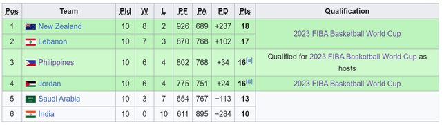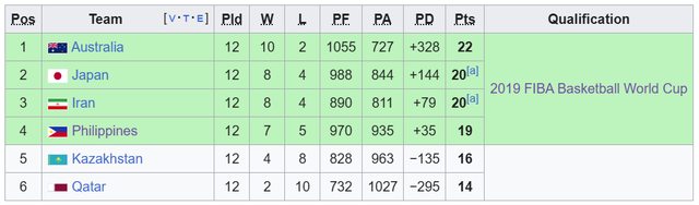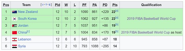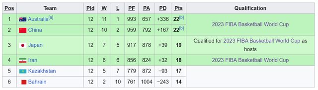 這是2019年世界盃亞洲F組排名: