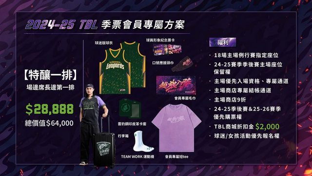 超近距離欣賞球員英姿,獨家享有球迷版球衣、球員形象紀念票卡、口號應援頭巾,加贈球員款 #豹拉風行李箱。