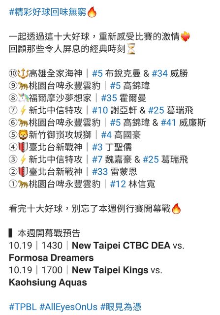 標題[情報] TPBL 熱身賽十大好球