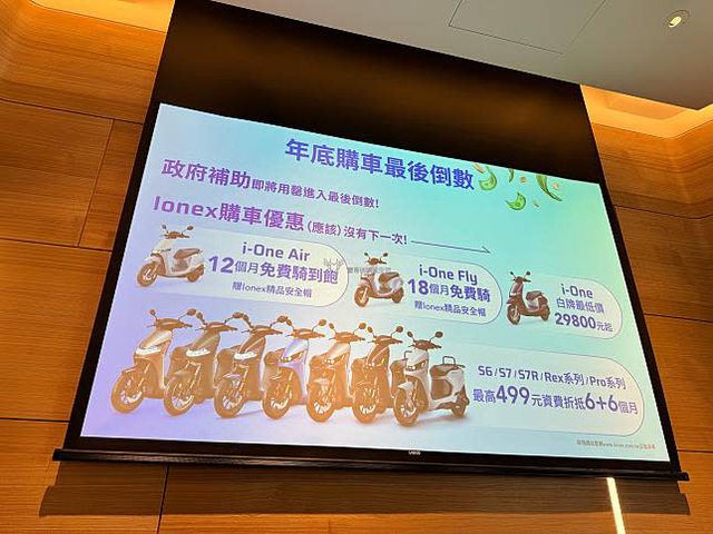 兩者都加贈 Ionex 精品安全帽。i-One 則是祭出白牌最低價新台幣 29800 元起。