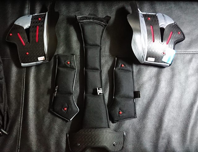 下巴罩,有個很微妙的設計是中間使用透氣網布。 安裝上單純是用卡的,但如果頰襯沒先拆下就去卡,保證卡不緊。 所以要先拆頰襯,卡好下巴罩,再裝頰襯,稍微麻煩的順序。
